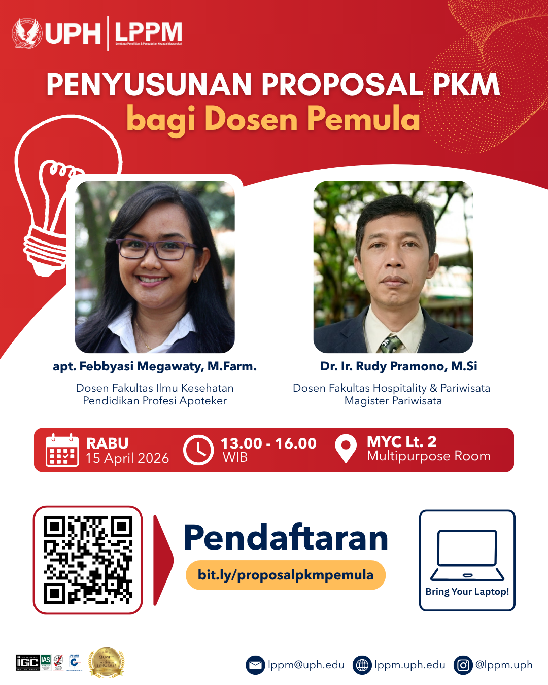 LPPM bersama dengan HRD Learning & Development akan mengadakan pelatihan “Penyusunan Proposal Pengabdian kepada Masyarakat bagi Dosen Pemula”. Pelatihan ini dirancang untuk memberikan…
